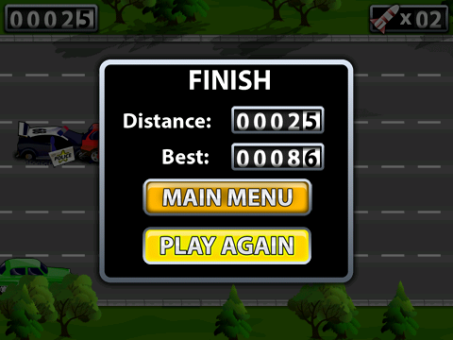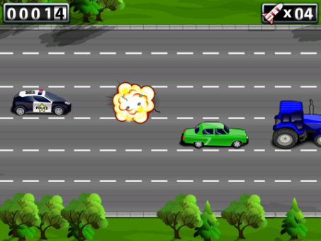 Player drives the car by multiband road. The car needs to avoid other vehicles. Player can use skills and collect bonuses that help him to reach the goal. The goal of the game is to drive as long as possible and don’t crash. Player can launch a rocket from the car. Rocket will destroy one vehicle in front of the car. Also the car can become invulnerable for a certain period of time.