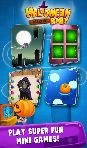 Halloween is just around the corner, here a lot of fun and wonderful surprise waiting for you. Let's enjoy the most exciting holiday with Halloween Talking Baby game. Talk to the cute Halloween baby and get into his dreaming world. He repeats everything you say in a funny voice and reacts to what you say or your touch. Take good care of your little baby and make him part of your daily life by feeding him his favorite foods and playing with him. You can also enjoy babies dancing disco on excellent music tones. Here we added the tons of fun activities that you enjoy with a baby like tickle the baby's leg and he will laugh, touch the baby's stomach and he will fart, touch his head and start talking. So enjoy hours of fun and laughter with this amazing Halloween Talking Baby game.