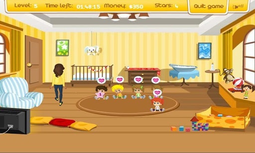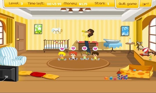 This is a new babysitting game for girls and young kids. In this great time management game you are the neighborhood babysitter and all the neighbors bring their kids to you (which makes you money)!You have to be fast and give them what they need when they ask for it.