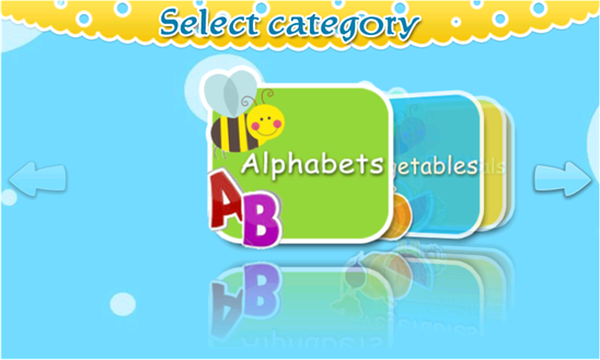 Fun and colorful application to keep your children engaged, learn English alphabets and build cognitive skills. This application has collection of pictures with all English letters under alphabets, vegetables, fruits and animals category. All pictures accompanied with appropriated sounds!!