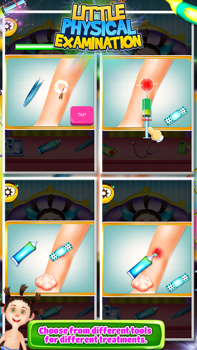 With the help of this game you can be a doctor and treat kids in a Little Physical Examination. You can make them healthy again and put a smile back on their faces.