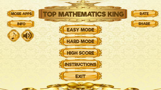 »»»»»»»Are you searching for a brand new educational game that will entertain you magnificently? If your answer is yes then you have come to the right place. Download free the best ♥Top Mathematics King♥ app on your phone and then show it to your children to surprise them with its amazing backgrounds. They will be astonished with the golden details and luxurious crowns. They will feel special while they play and try to answer all the questions as fast as possible. They will have the opportunity to freshen up their knowledge of all four basic operations of elementary arithmetic right now with this fun and learning game. Once they open it, they will be surprised when they see that they will have two modes at their disposal. There are easy and hard one and they can choose whichever they want. The first one is perfect for toddlers and preschoolers so let them have fun with the latest ♥Top Mathematics King♥.