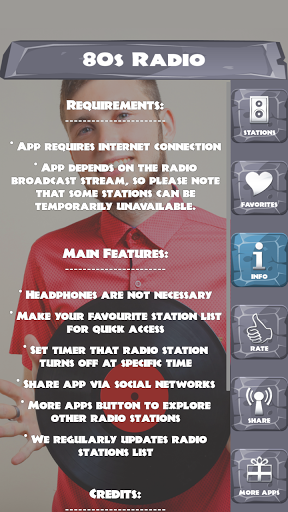 Electronic music as well as hip hop were also very present during these years and when you hear the songs that have been created then you will be taken away to those years that were so flourishing when it comes to music. Among so many cool channels that we are presenting you here within the newest ~80s Radio~ you could select the ones that you prefer and set them into the favorite folder. The newly organized list will give you a hand when you open this top application next time and wish to find the station you would like to enjoy. The high quality songs are going to fascinate you and you will be impressed with the music that is going to accompany you while you are traveling on a bus or walking to work. There is no need to think twice about this decision! Rush off to the market immediately and download the new ~80s Radio~ on your tablet or phone. Can you believe that it is completely free of charge?