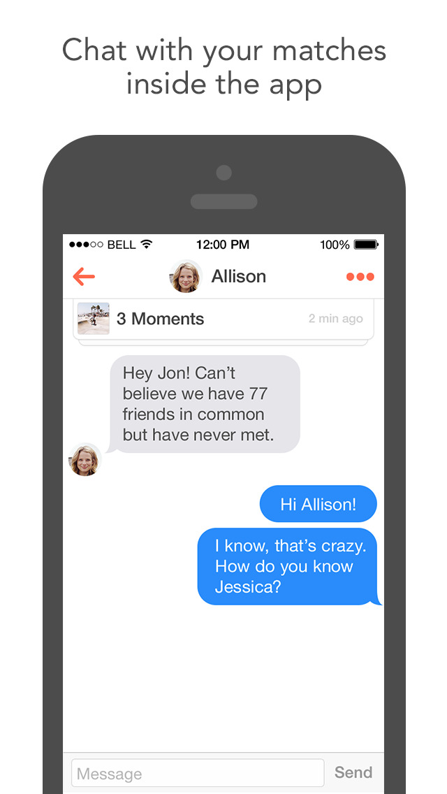 * Once you match with someone, you can chat with them from right inside of the Tinder app