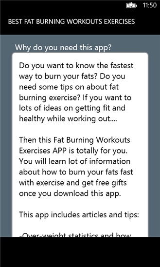 Then this Fat Burning Workouts Exercises APP is totally for you. You will learn lot of information about how to burn your fats fast with exercise and get free gifts once you download this app.