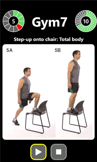 Gym 7 was carefully designed to assist you throughout these exercises. It integrates visual information with specific timers and cool sounds, thus allowing you to keep focused on the physical effort rather than on the marginal aspects.