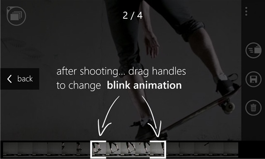With Blink for Windows Phone 8 and 8.1, you'll never miss the best shot or the action. Blink captures a burst of images before you even press the shutter, and continues to capture pictures after you've taken your shot. Save and share the shot you like best. And better yet, save a short animated Blink and share it to Facebook, Twitter, OneDrive or Blink.so.cl.