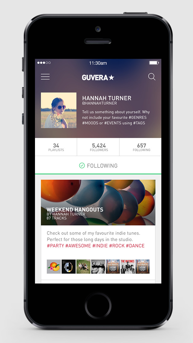 - Find and follow your friends or other Guvera users that share your taste