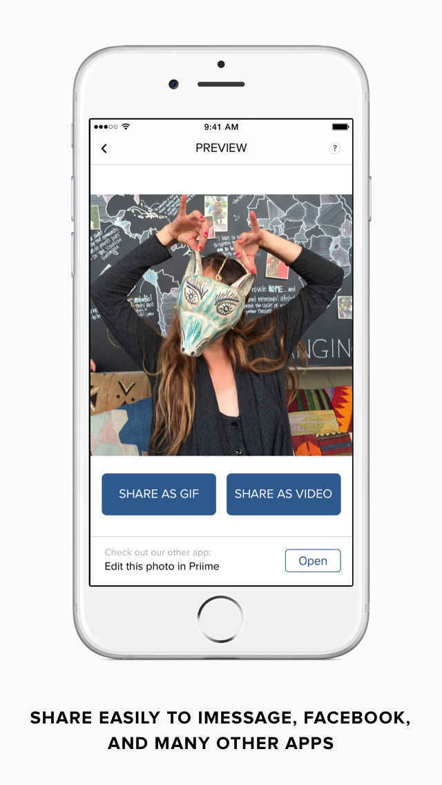 Expand your creativity with your Live Photos. Save as a GIF and edit with any GIF editing app, or save as a video and open in your video editor. Quickly share to Facebook, iMessage, Twitter, Email, Instagram, and more.
