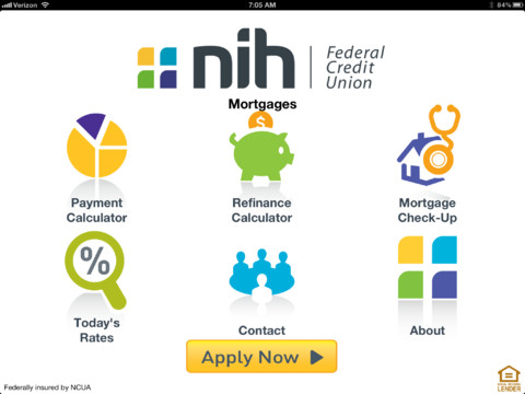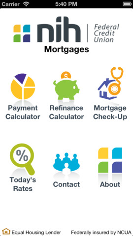 Find a mortgage you’ll love with NIH Federal Credit Union’s handy mortgage app! Calculate your monthly mortgage payment or find out whether a refinance makes sense for you. You can also check our rates in real-time and request a free no-obligation mortgage check-up with personalized advice!