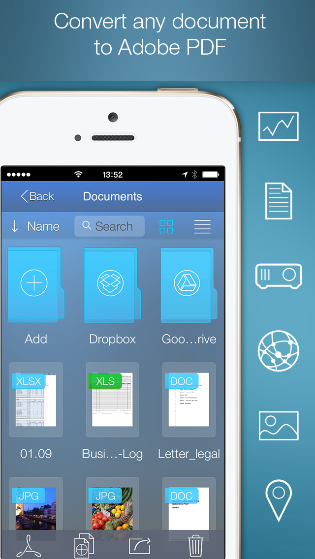 Meet the best-of-breed PDF processor for power users. Scan papers, surf the web and view office documents. Save essential content to Portable Document Format. Easily merge and arrange PDF files. Annotate, sign and share documents on the fly. All with crisp-new iOS 8 look and feel.