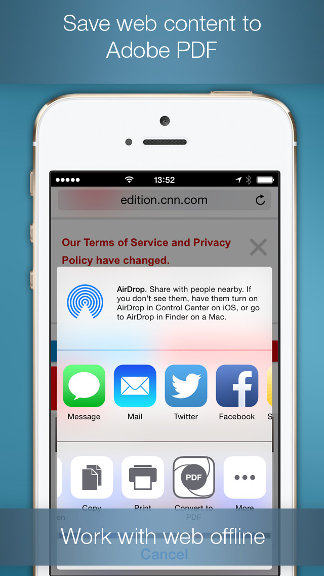 With the built-in scanner, internal web browser, Open In command and support for Dropbox storage, PDF PROvider ensures quick access to all your essential documents and major content. The Convert To PDF Extension now allows to convert web content from you any browser.