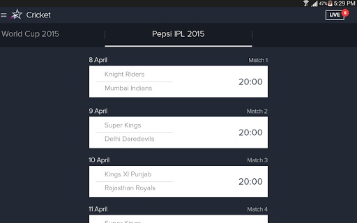 - Watch the PEPSI IPL 2015 matches stream featuring your favorite teams – Royal Challengers, Delhi Daredevils, Mumbai Indians, Kolkata Knight Riders, Chennai Super Kings, Rajasthan Royals, Kings XI Punjab and Sunrisers Hyderabad