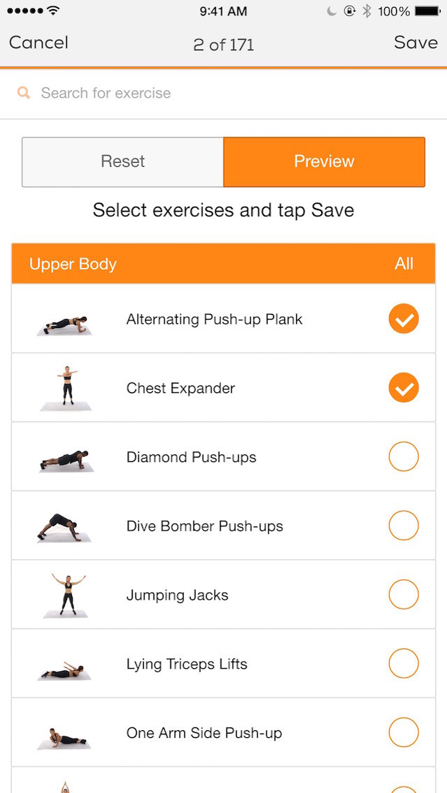 Or if you're particular or have special needs (like a bad knee and want to avoid jumping exercises), create your own custom workouts from our library of over 160 different exercises!