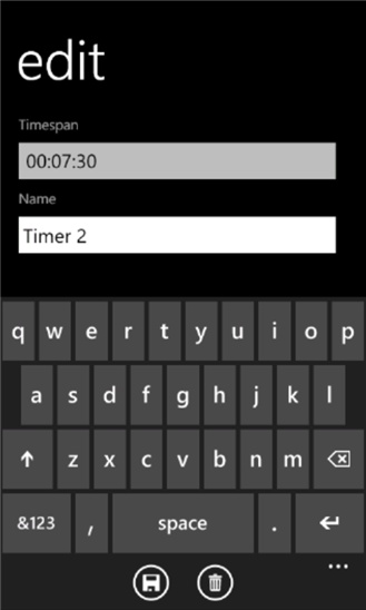 A simple timer and stopwatch app for Windows Phone. It uses the background capabilities of Windows Phone 7.5 Mango and is able to show alerts even if the app is closed. It is also able to show the next alarm on its live tile. The Timer App uses some new features introduced in Mango. These features allow it to perform actions even when the app is not running. There are a few limitations to these background features! The timer might be some seconds delayed when the app is not running, vibration is not possible for a background alarm and the live tile can only be updated every 30 minutes or when the app is running. So the tile might sometimes show a timer that already started. I hope I can find a way to remove these limitations but currently there doesn't seam to be a way to do this. changelog: