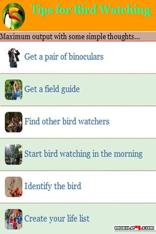 Mobile Apps Store. This version of Tips For Bird Watching Mobile Phone App was uploaded on 17-02-2015 Mobile Phone App. This mobile phone apps has size 0 , uploaded in Miscellaneous mobile phone