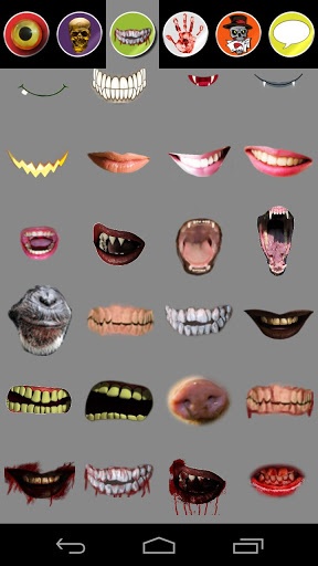 ✓ Mouth: presents various mouth expressions, sharp dentures, vampire bites, animal noses like the one of a monkey and pigs etc.