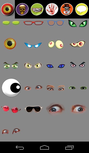 ✓ Eyes and glasses: Contains many different types of sun glasses and special eye types of a cartoon, cats, zombie, shadow, robots, red bleeding eyes etc.
