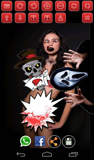 Scary sticker app to fake your pictures. Give your pictures a creepy touch. Thanks to this amazing tool you will be able to create unique photos. Use this cool sticker app to change your face, the one of a friend or simply to add something special to any picture that you have saved in your library. Select a photo from your gallery and start personalizing by choosing between numerous frightening stickers. You will be spoiled for choice in selecting the coolest stickers.