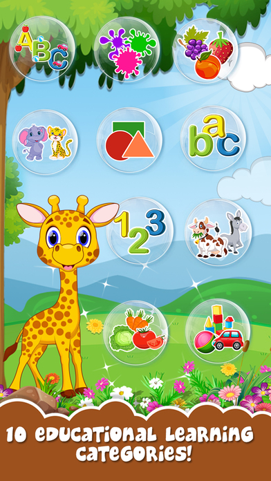 If you are tired of learning your ABC through simple ways then you must surely try this entertaining way of to learn all the alphabets. Enjoy playing lot of different fun educational activities for toddlers. Choose your favorite animal character and then start the fun game of learning. Learn all the numbers, alphabets, Colors through all the bubble bursting game. Also learn the names of fruits, vegetables, animals, and much more. After you have learnt you can test your skill by playing a test game after that.