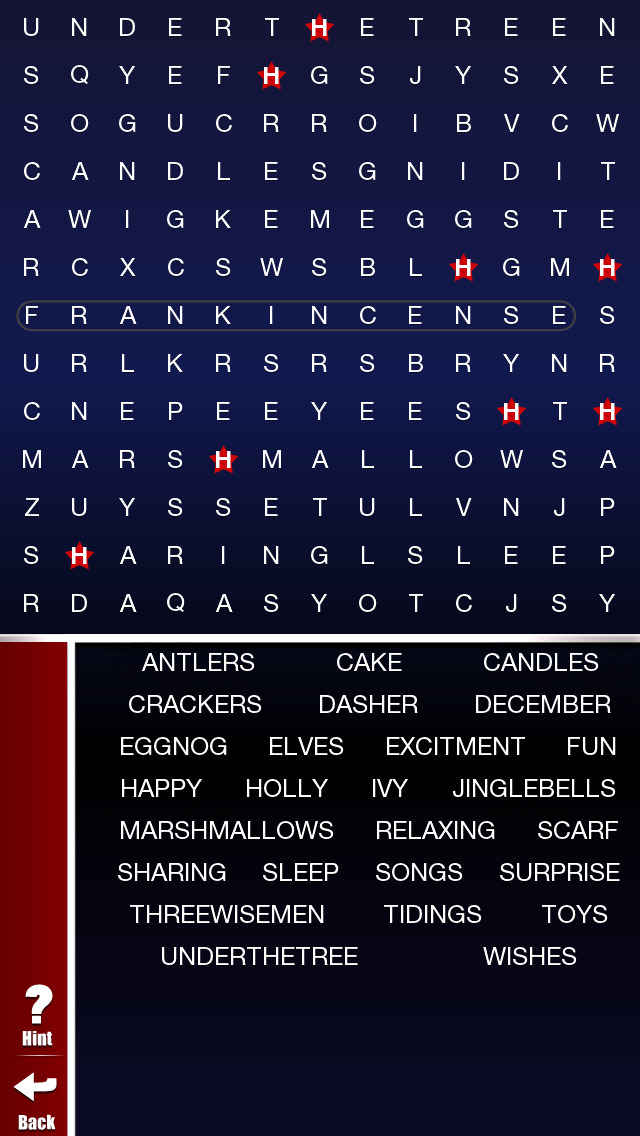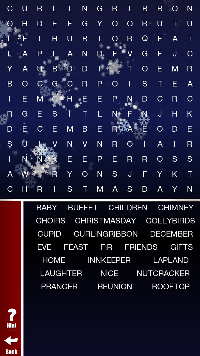 Words can be hidden in any direction and, with the game's simple and intuitive interface, this warming Wordsearch is the most fun you can have this holiday season!