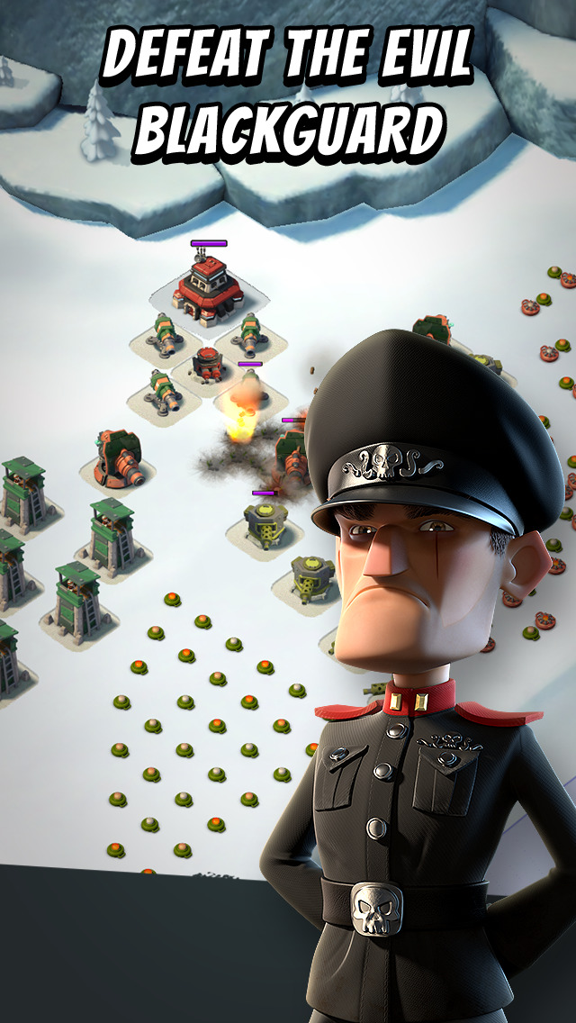 Fight the evil Blackguard with brains and brawn in this epic combat strategy game. Attack enemy bases to free enslaved islanders and unlock the secrets of this tropical paradise. Create a Task Force with players around the world to take on the enemy together. Scout, plan, then BOOM THE BEACH!