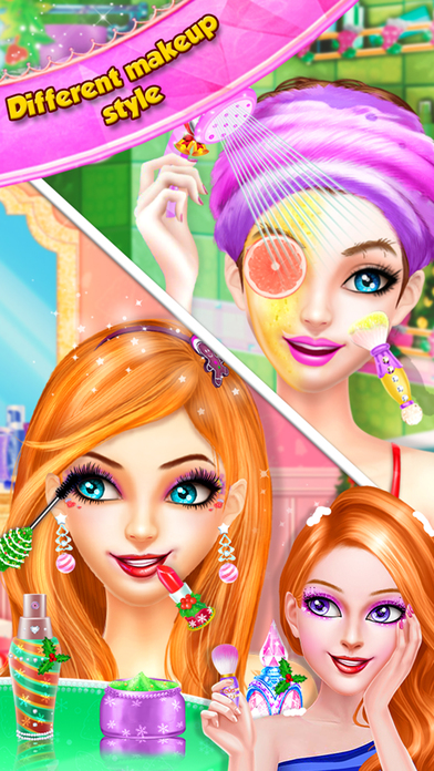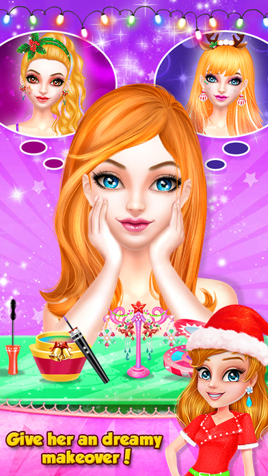 Hello girls, get ready to give a perfect makeover to your Christmas Girl to look gorgeous in the celebrations. Christmas Girl Spa Salon is helpful to every girl who wants to look best for Christmas time. First off, select your favorite character and apply spa treatments to remove her pimples and dark circle. Then go to the hair salon and prepare an attractive hair style for her. After that, select an amazing makeup like eyeliner, eye lenses, eye shadow, lipstick, mascara, blush, earrings, necklace and much more. And then choose different items like dresses, hats, funky stockings, bags, jewelry and shoes in dress up. Finally get ready to take some cool photos with princess girl. Play and enjoy this Christmas Girl Spa Salon game and share it with your best friends.