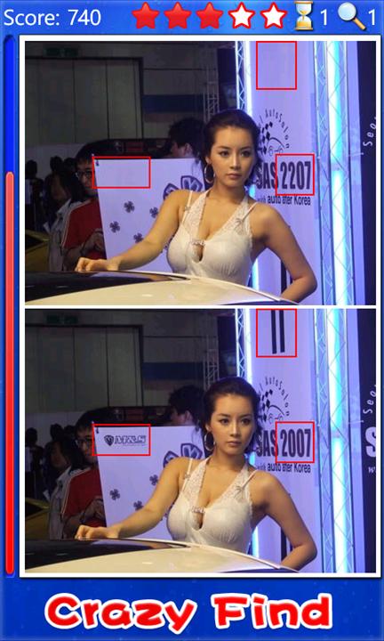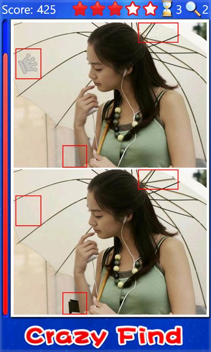 Crazy Find is a classic puzzle game. Every picture has five difference, find all of them to goto the nextlevel.