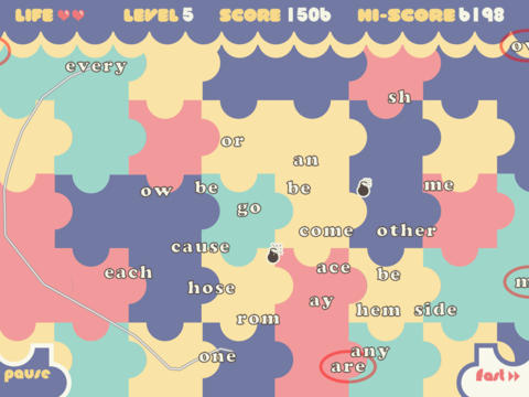 By hitting one word with another word, see how fast you can match a pair and how far you can go!