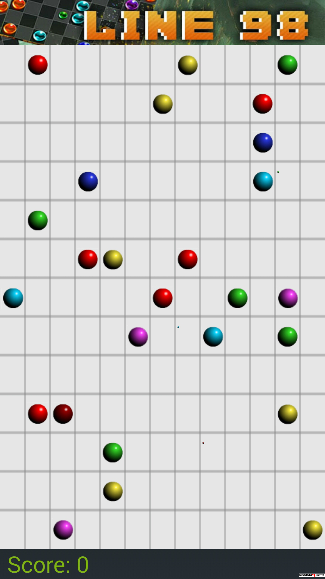 Lines 98 is a simple interested classical game. The player needs to arrange 5 or more bubbles of the same colour consecutively in straight lines (vertical, horizontal or across) in order to make scores and clear the bubbles from the board.