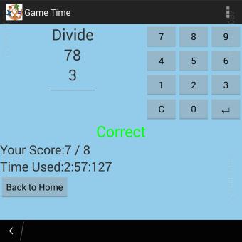 The game is math-based, composed of random addition, subtraction, multiplication and division questions.
