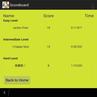 When the player enters the game, the timer starts from 0:00:000 and the first question appears. The player has to enter the correct answer to get a point (no point for incorrect answer). After 10 questions, the game ends (the timer stops and a score out of 10 is tallied). Player can submit their score and time or return to the first page of the app.