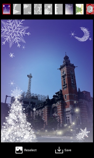 the joke system camera which can take the photograph of Christmas atmosphere full marks only by pushing a camera mark after that -- * which is an application