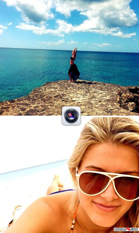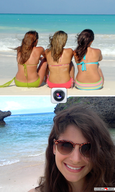 Have a mobile phone or tablet with two cameras (one front and one rear camera), take a picture with both cameras, share on your social networks or save this fantastic picture.