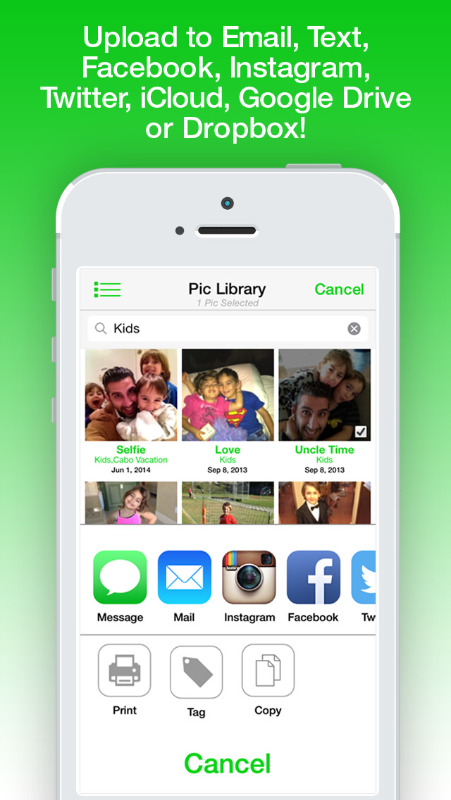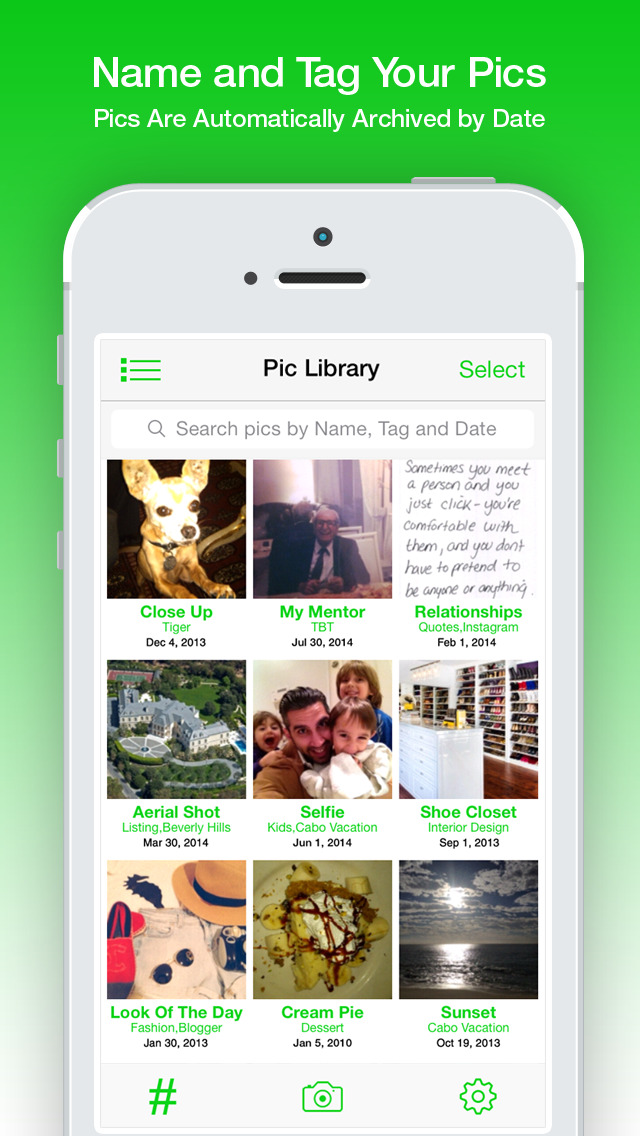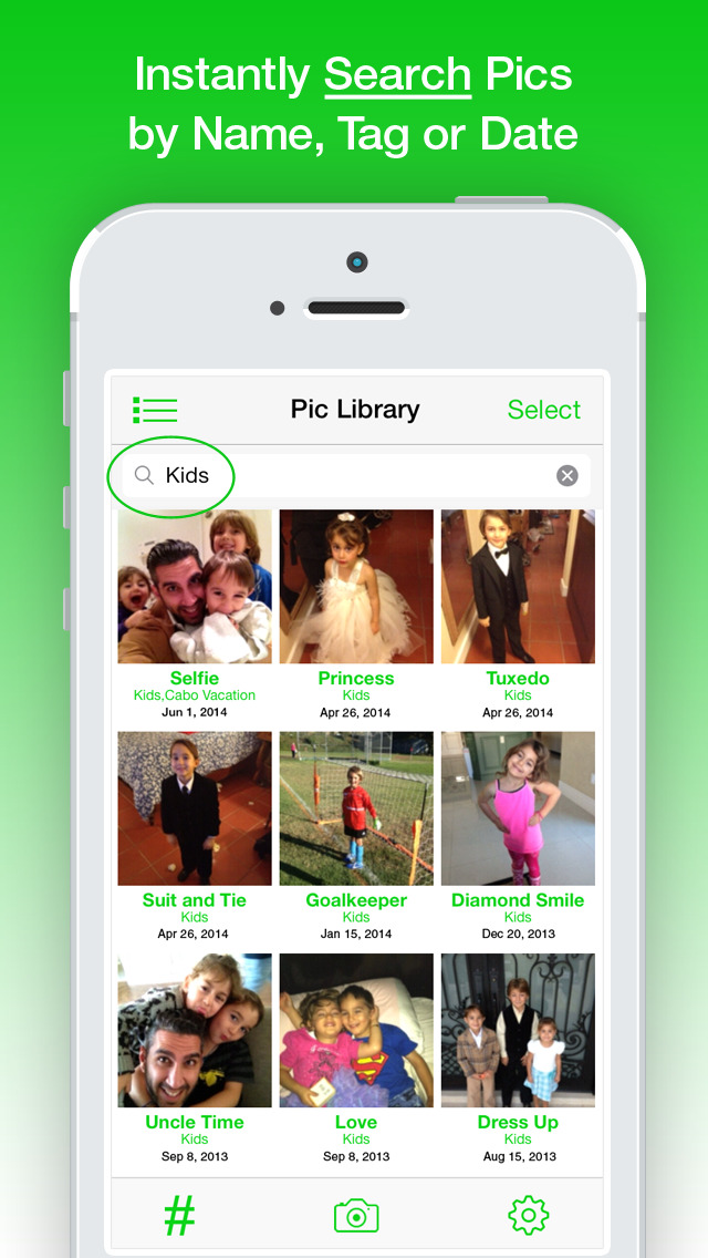 Your Camera Roll on steriods! Featured in TechCrunch and CNET! Get it now at the special promotional price. QuickPics Photo Manager allows you to name and tag your pics, then quickly find them by using the search bar and/or sort buttons. Never scroll again to find a pic, it will save you so much time! With 1 tap you can easily name/tag the pics already on your device. With the exclusive slide selection feature you can select 100’s of pics quickly and tag them all with 1 tap. Even if you never add a name or a tag to your pics, they will automatically be archived by date. This means you will be able to use the search bar to simply type in the month, day, or year a pic was taken and as you type all matching results will be displayed.