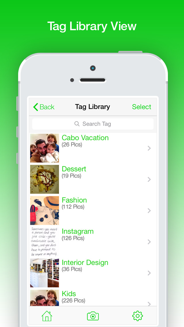 You can tag multiple pics at the same time. This will come in handy with the pics you currently have on your phone and with all of your new pics to efficiently tag or delete multiple pics.