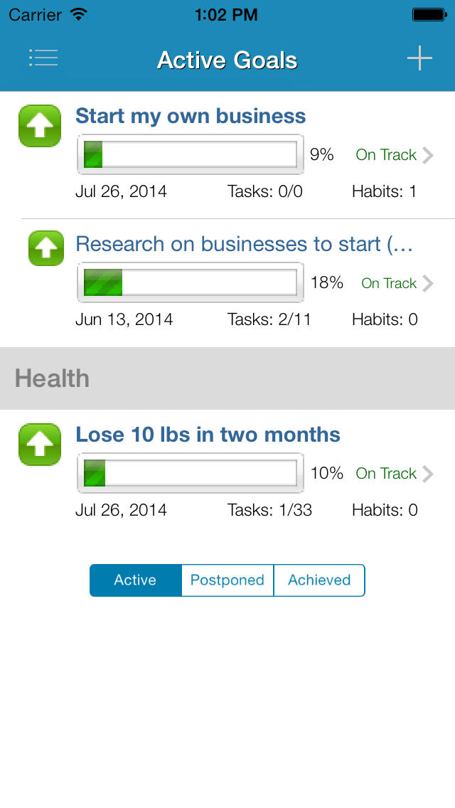 Goalsontrack App Screen Shots: