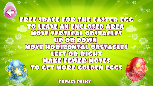 ✔✔✔ Grab the chance to enjoy in the top sliding block puzzle game right now. What enchants you is the fact that it is suitable for both kids and adults and you can play the coolest ☃Free Easter Egg☃ together. Spend the most pleasant afternoon playing together and even organize a contest. The winner will be the player who reaches the high score. Do not rush but be patient while you play as here time is not of importance and you are not in fight with it. Think carefully before you make any move because your goal is to make as few of them as you can and earn all three golden eggs so that you can reach high score. Help main character to leave enclosed area and in that way, you will develop sequential-thinking. Rush to the market to download free the popular ☃Free Easter Egg☃ app and enjoy in best and impressive puzzles.