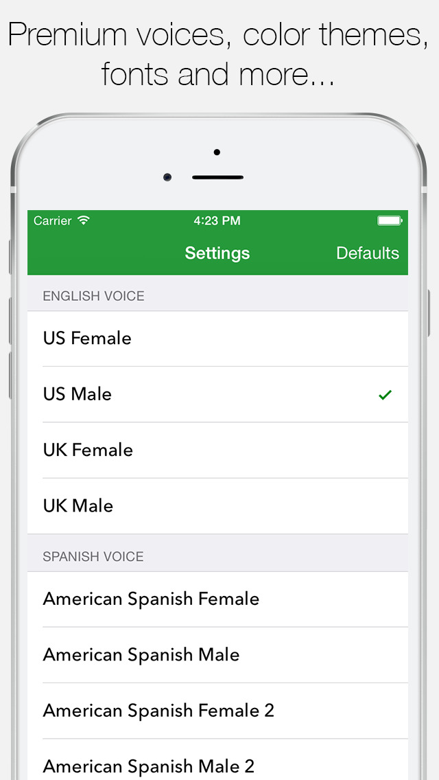 • IPA Phonetic transcription for American and British English. (Optional In-App purchase)