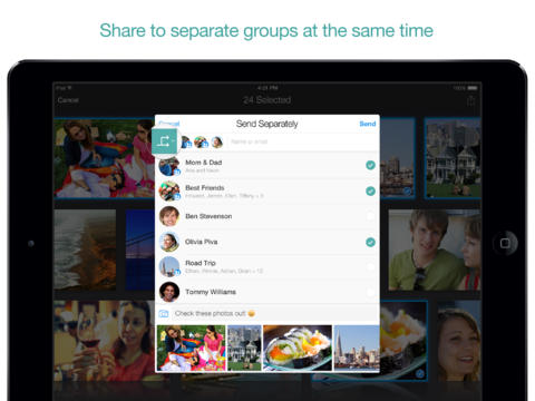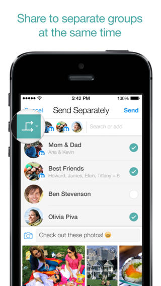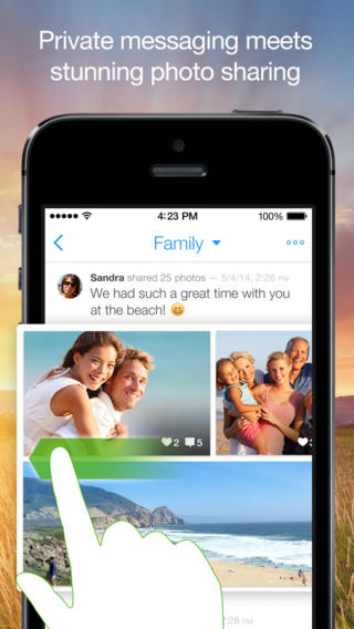 Use BeamIt to chat and share everyone’s photos from a weekend outing, all elegantly organized. Or, delight Mom with a personal stream of your photos and messages every day. All your conversations in BeamIt stay private.