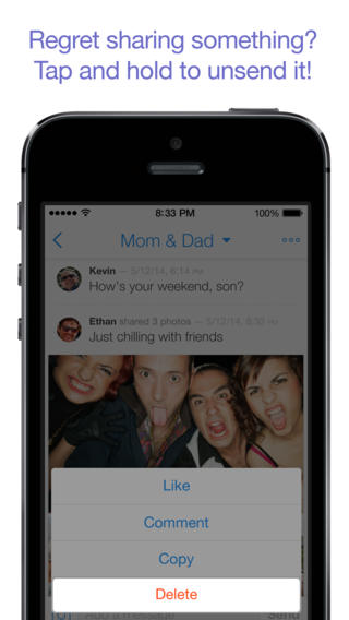 + Unsend – Regret sending something? Tap “Delete†and it disappears for everyone.