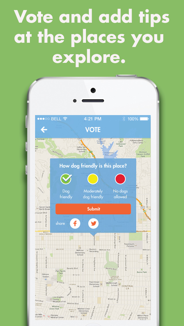 - Instantly post to Dog Land and share to Facebook and Twitter