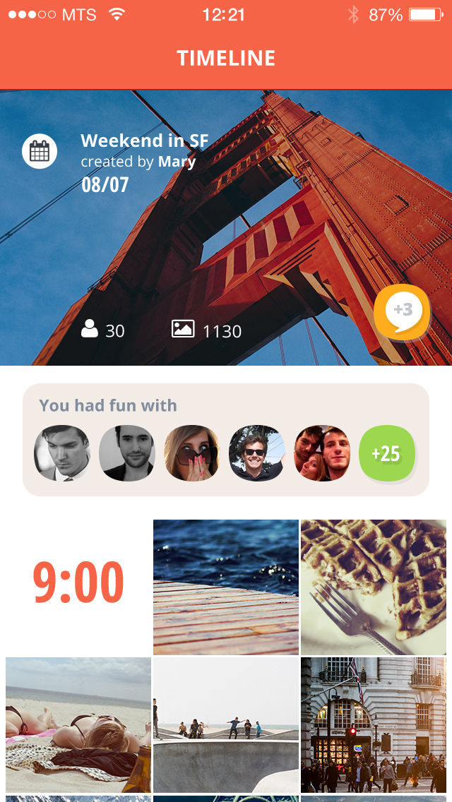 Create a Flashgap album and invite your friends to join. The timer begins and all photos taken in this album disappear within three seconds... It's only the next day, at noon precisely, that you will discover the full album created by you and your friends :)