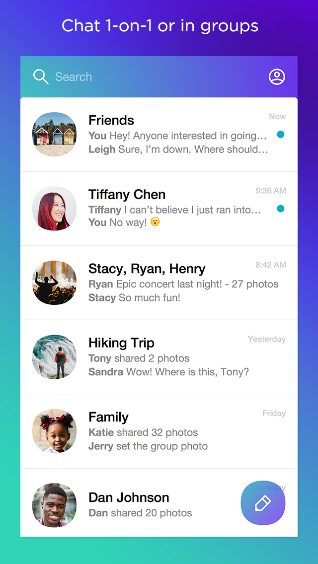 • Chat one-on-one or in groups