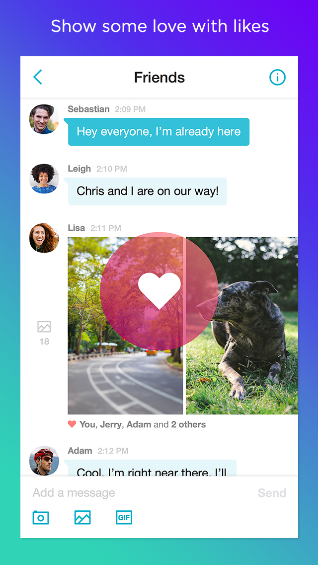 • “Like” messages and photos in the conversation