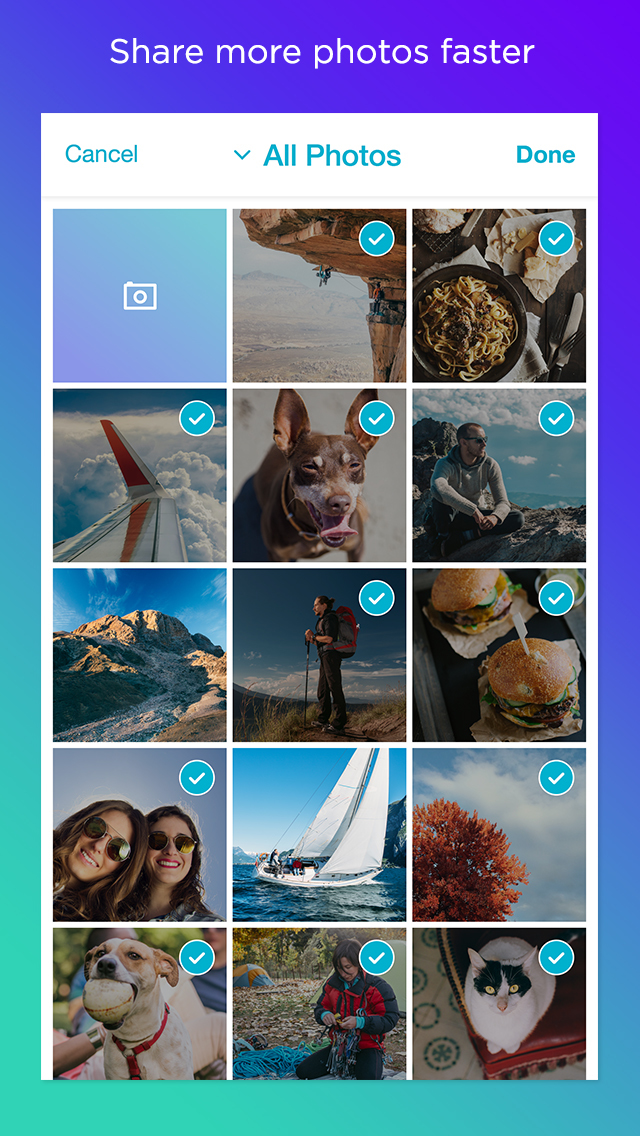 • Instantly share lots of full-resolution photos at once