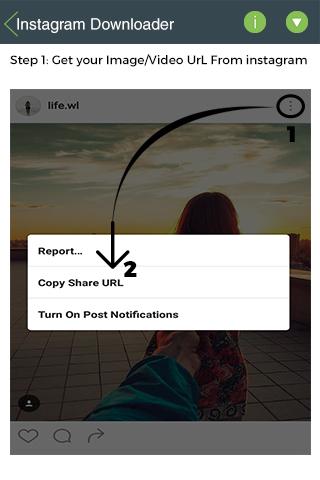 * Open Instagram and copy share URL;
