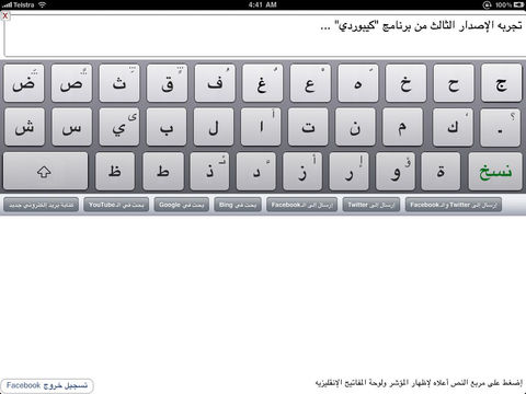 هو برنامج كيبورد عربي متكامل للآيباد يتيح لك تجربة لوحة المفاتيح الأصليه